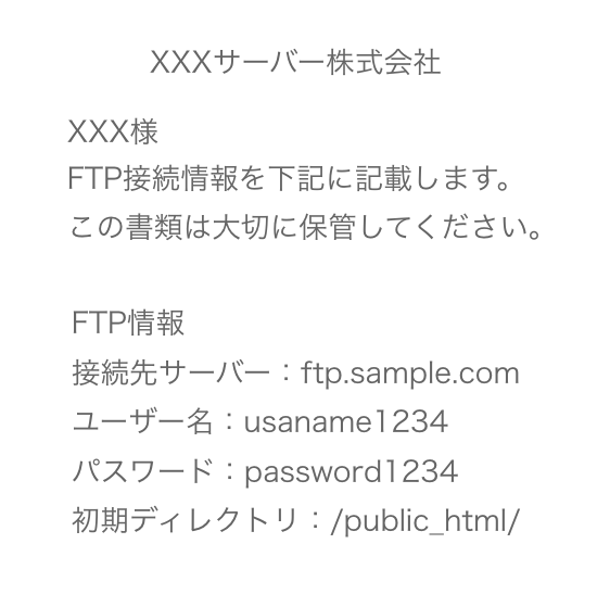 先ほどいただいたFTP情報でサーバーにアクセスできるので、