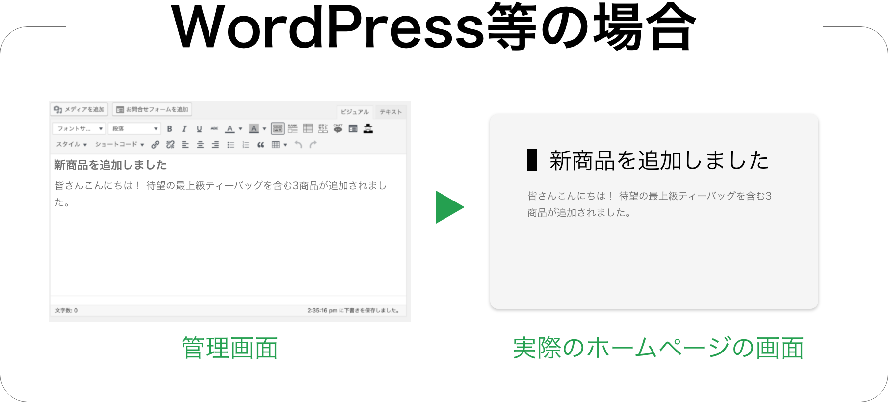 なによりCMS構築という概念、構築作業という実務、がほぼ無しで導入できてしまうのです。